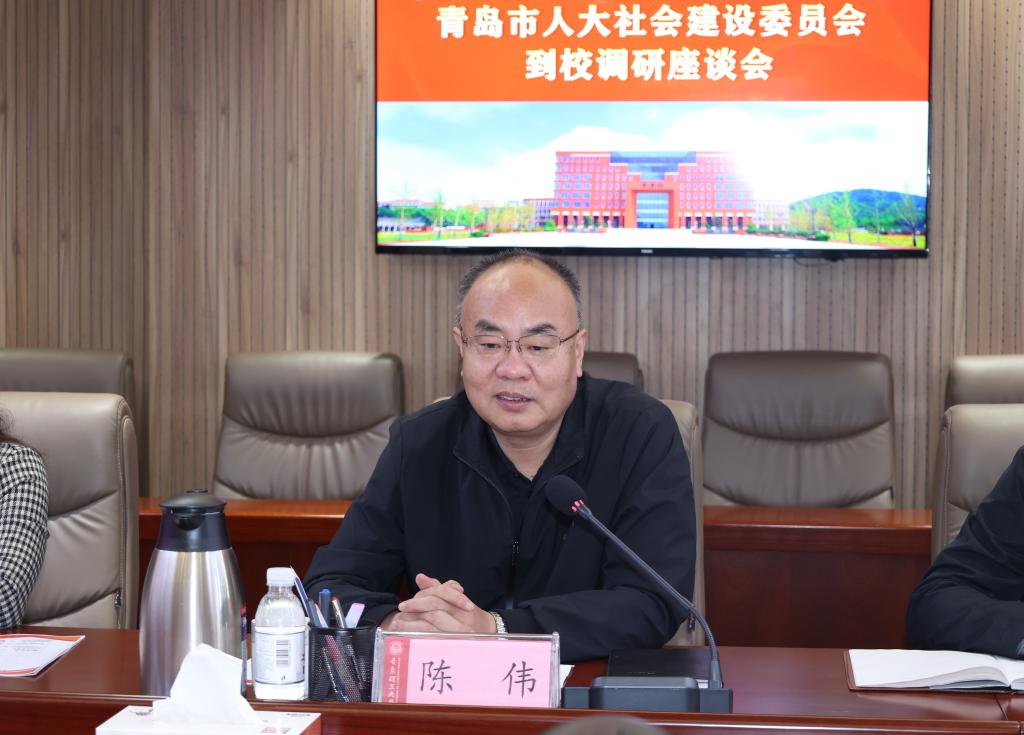 陈伟在致辞中简要介绍了学校基本情况和人文社会科学繁荣发展取得的成效。他表示,近年来学校社会工作专业快速发展,服务地方发展的能力不断增强。学校与青岛市人大长期保持着密切联系,希望人文与外国语学院为本次调研提出有益建议,推进深度合作,为青岛市社会建设持续贡献理工力量。