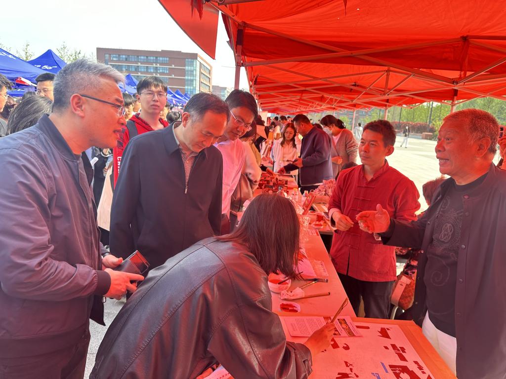 从经典中汲取精神力量,在传承中延续文化命脉。为追寻传统文化根脉,深入挖掘中华传统文化之美,让传统文化可亲、可近、可感,学校于5月10日下午在礼贤广场举行第一届中华优秀传统文化游园会活动。党委常委、组织部部长郭建锋,西海岸新区部分非遗项目负责人、各学院传统文化爱好者参加了活动,活动吸引了上万人观摩体验。