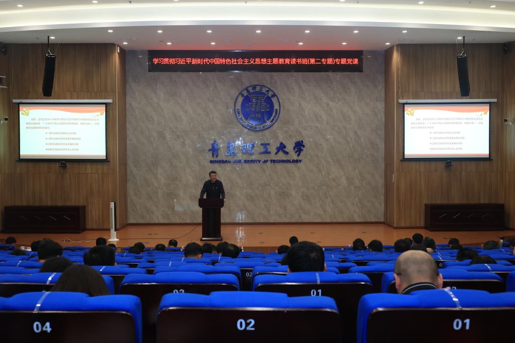 根据学校主题教育工作安排, 5月15日上午,党委书记王亚军在西海岸新区主校区为党员干部讲主题教育专题党课。省委第24巡回指导组副组长岳远彬同志、成员邓体海同志到场指导,党委副书记、校长谭秀森主持,学校领导班子成员和全体处级干部参加专题党课。