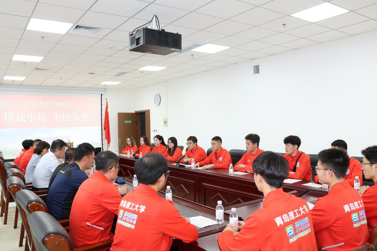 5月30日,党委副书记李国华亲切慰问我校载誉归来的排球队员并召开座谈会。体育教学部党总支书记金建英,党总支副书记、主任王龙,副主任、学生男排教练员于健,学生男排主教练王永强,学生女排主教练张琦及学生男、女排球队队员参会。座谈会由王龙主持。
