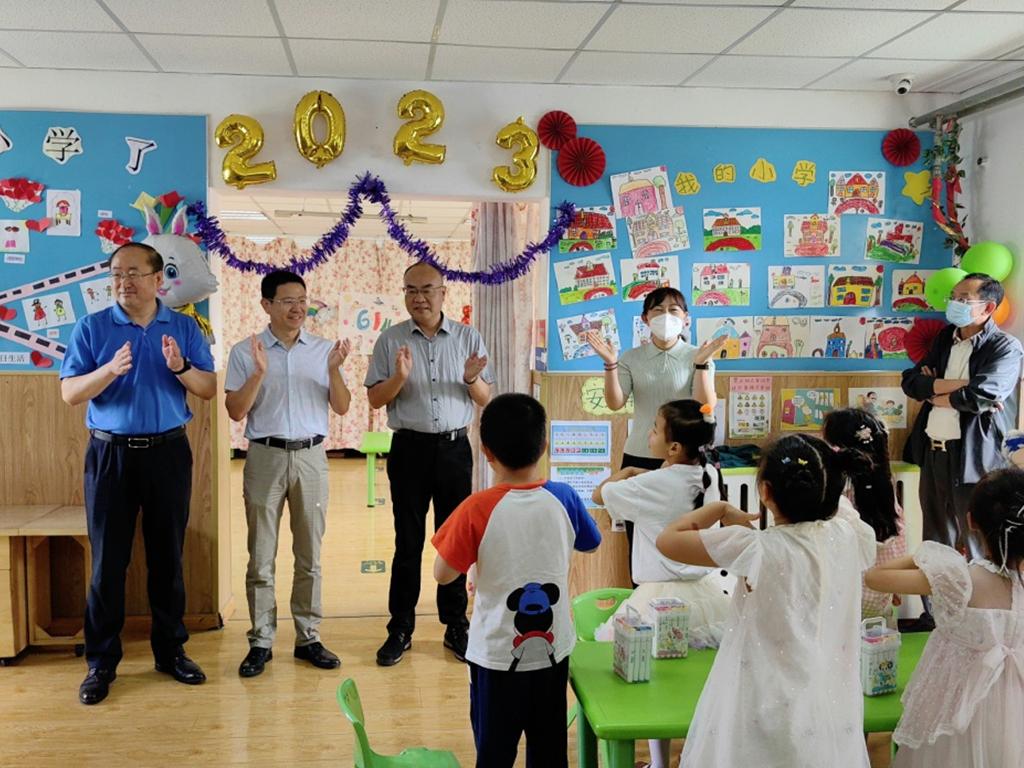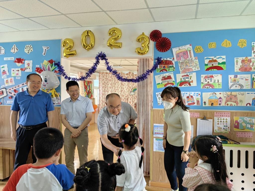 陈伟一行还实地查看了幼儿园教室、文化墙等各项教学及生活设施,询问了解小朋友们学习和生活情况。他表示,看到孩子们茁壮成长感到十分欣慰,感谢幼儿园教师们的辛勤付出。学校将一如既往支持幼儿园发展建设,希望幼儿园秉持科学办园理念,进一步创新教育教学方式方法,持续开展丰富多彩活动,不断加强教师队伍建设,营造优美安全的园区环境,为教职工们解决后顾之忧,把幼儿园越办越好。(撰稿:李卓;审核:乔海涛)