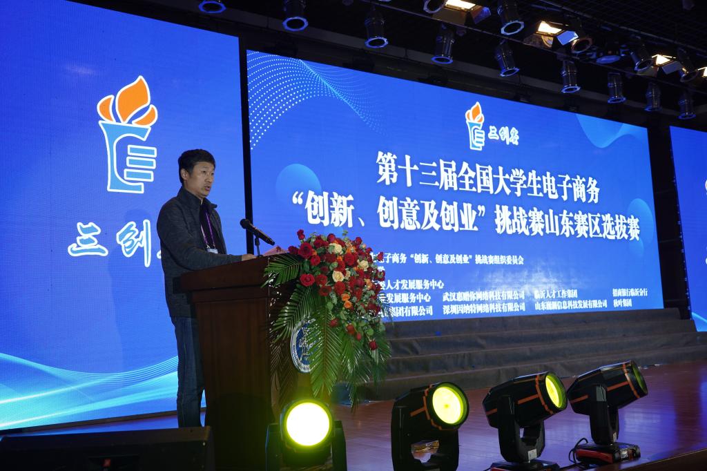 6月4日至5日,由全国电子商务产教融合创新联盟主办,青岛理工大学承办的第十三届全国大学生电子商务“创新、创意及创业”挑战赛(以下简称三创赛)山东赛区选拔赛在临沂校区成功举办。学校党委副书记、临沂校区党委书记李国华,教育部电商教指委副主任、三创赛竞组委主席、西安交通大学教授李琪,学校创新创业学院院长李俊,临沂校区党委副书记李国涛,教育部电商教指委委员、湖南大学教授周忠宝,武汉惠赠你网络科技有限公司董事长、全国电子商务产教融合创新联盟副理事长游文超及校区相关人员参加开、闭幕式。