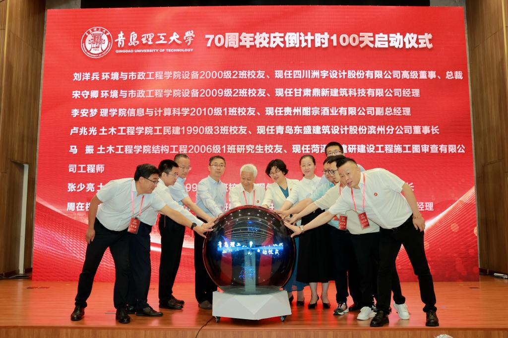 踔厉奋发七十载,笃行不怠向未来。6月9日,青岛理工大学70周年校庆倒计时100天启动仪式在西海岸新区主校区举行。学校老领导、老教师代表,来自全国各地校友会的校友代表,合作单位代表,在校师生代表,新闻媒体单位的领导和记者朋友,学校现任领导班子成员、各学院各部门各单位的主要负责同志参加启动仪式。党委书记王亚军主持仪式。