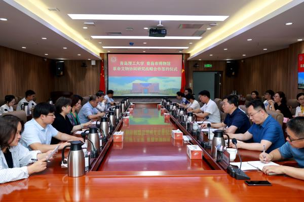 6月27日,我校与青岛市博物馆革命文物协同研究战略合作签约仪式暨“青岛革命文物协同研究学术研讨会”在西海岸新区主校区举行。党委常委、副校长张凯,青岛市文化和旅游局二级调研员邹慧忠,青岛市博物馆党总支副书记赵好出席并致辞。山东大学历史文化学院教授刘家峰,中共青岛党史纪念馆副馆长谭玉玲,青岛市城市文化遗产保护中心副主任王莉,山东科技大学马克思主义学院副院长邵勇,青岛科技大学马克思主义学院刘彩萍博士,青岛市文化和旅游局、青岛市博物馆业务骨干,学校人文社科处、宣传部、人文与外国语学院、马克思主义学院负责同志、教学科研骨干教师和部分同学参加活动。活动由人文与外国语学院党委书记卢新明主持。