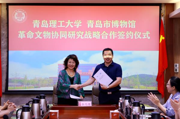 赵好代表青岛市博物馆祝贺协议的签订,表示将在协议框架下认真与青岛理工大学开展合作,充分发挥各自优势,在人才梯队、文物研究、展陈设计、社会教育等方面实现资源共享、优势互补,共同用好红色资源,赓续红色血脉。