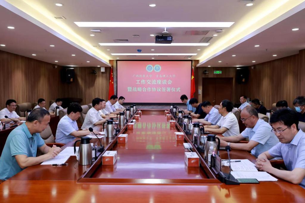 广西科技大学校长刘宝臣介绍了广西科技大学校区分布、学科布局、专业发展特色、就业情况等基本情况。他指出。广西科技大学立足柳州、立足广西、辐射东南亚,具有汽车、自动化、医学、化学等优势学科,希望能与青岛理工大学加强交流与合作,共建研究团队、共同培养卓越人才。