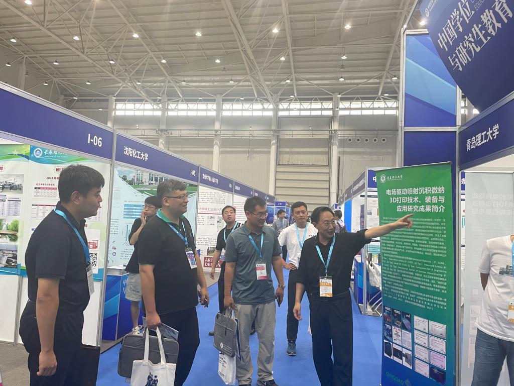 大会期间,张凯带队集中参加了开幕式和主会场主题大会,参会人员根据工作领域参加分论坛学习研讨。并与多所参会高校围绕研究生培养模式改革、提升人才培养质量、促进拔尖创新人才培养等方面展开深度研讨。机械与汽车工程学院山东省增材制造工程技术研究中心兰红波教授团队研究生创新成果电场驱动喷射沉积微纳3D打印技术、装备与应用受邀参展本届大会展览。