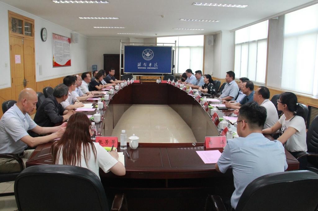 在潍坊学院,校党委书记李东介绍了学校办学历史、基本办学情况,重点介绍了学校建设高水平应用型大学的目标任务和“十四五”时期“一二三四五十”发展思路。调研组在集中座谈交流后,开展双方部门间的对口交流,并实地考察了该校科教融合创新中心、智能制造工程实训中心。