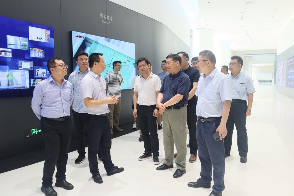 谭秀森一行首先实地考察了校友企业浙江大华技术股份有限公司。公司国内交付与服务部总经理、自动化2001级校友金建德热情接待了谭秀森一行。金建德介绍了公司在人工智能、算法应用、数智企业、智慧建筑等业务模块的产品和业务布局情况,阐述了与地方高校开展智慧教育合作的相关情况,并带领调研组一行沉浸式体验了智慧教育、AI教研方面的产品。