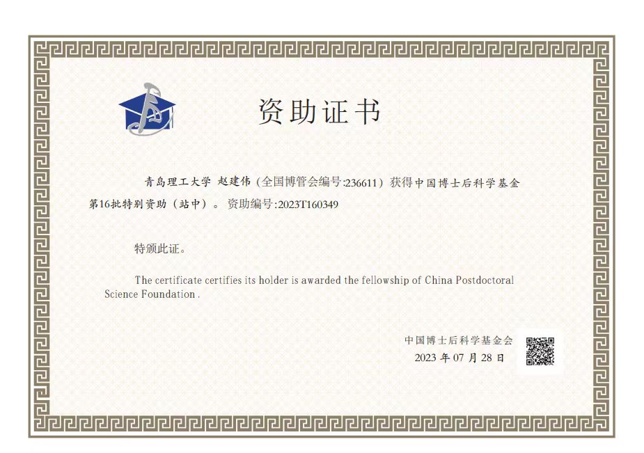 近日,中国博士后科学基金会公布了2023年度中国博士后科学基金第16批特别资助人员(站中)名单,我校土木工程流动站博士后赵建伟(合作导师孙英杰)成功获批。本次环境科学与工程学科共21名博士后获得资助,赵建伟为全国省属高校、也是山东省唯一获批者。