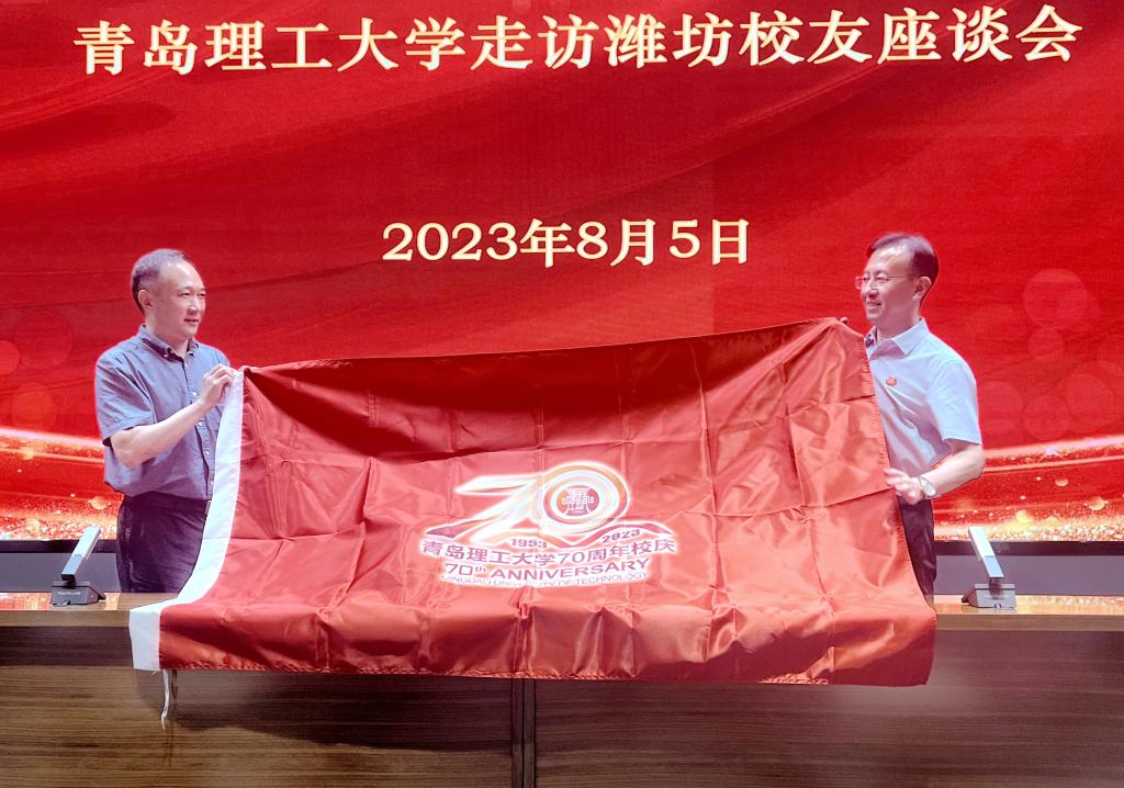 郭建锋一行与校友们共同观看了学校宣传片,郭建锋代表学校向潍坊校友会传递了70周年校庆纪念旗。(撰稿:吴磊;审核:鞠志强)