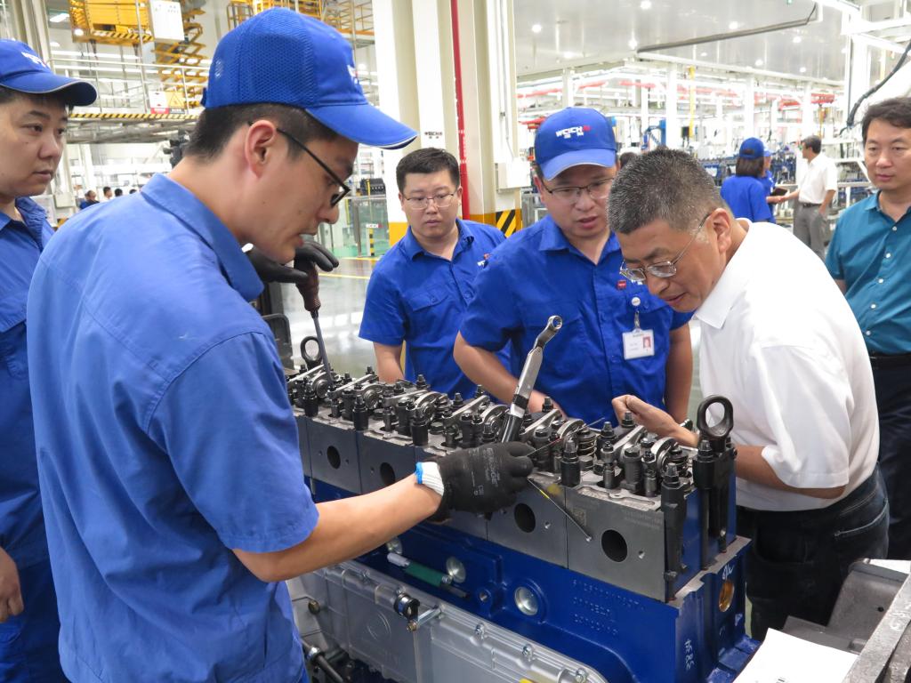 会后,与会专家在潍柴一号工厂进行现场考察,对在2023届产业学院优秀毕业生、中国大学生机械工程卓越工程师毕业设计大赛全国三等奖获得者窦健同学进行了回访,深入了解其入职后的工作情况。窦健感谢产业学院的培养,他表示一定再接再厉、奋发努力,用优异的工作成绩回报母校的培养。