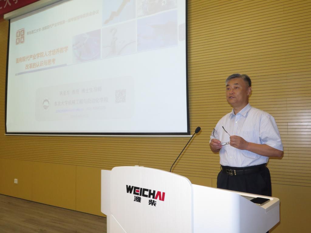 巩亚东教授作“面向现代产业学院人才培养教学改革的认识与思考”主旨报告。以高等教育服务引领产业发展,培养适应现代产业发展高素质应用型人才角度对产业学院建设给予全面指导。对青岛理工大学-潍柴现代产业学院前期工作和产出成果给予充分肯定。针对国家级现代产业学院建设目标提出指导意见。进一步明晰产业方向和特色,构建企业深度参与的人才培养知识体系,探索应用型人才培养模式特色,推进共建、共享、共管的建设理念。
