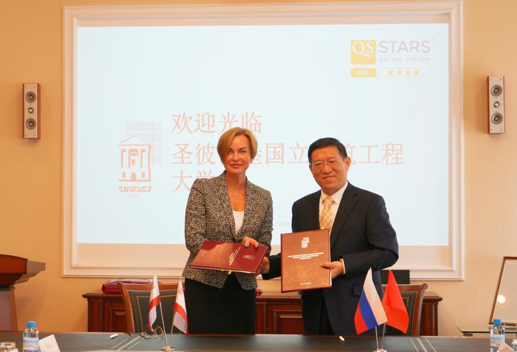 在圣彼得堡国立建筑大学,我校代表团与该校第一副校长斯维特拉娜·戈洛维娜、教学副校长谢尔盖·米哈伊洛夫、科研副校长叶甫根尼·克罗雷夫、土木工程学院院长安东·盖伊多、汽车与道路建设学院院长安德烈·扎泽金、国际关系部代表舒安娜·阿克玛杜拉耶娃等会面,双方现场签署合作备忘录,并就联合申报国际合作项目、联合组织国际学术会议、研究生联合培养等活动多方面达成了共识。