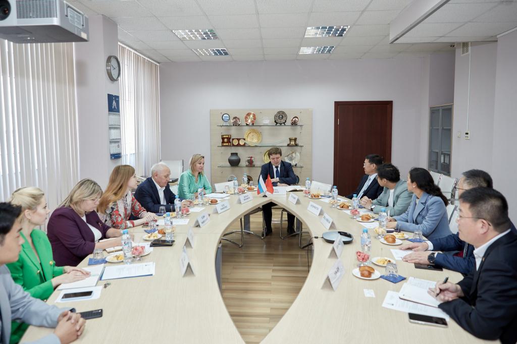 在莫斯科国立建筑大学,我校代表团与该校校长巴维尔·阿基莫夫、副校长娜塔莉亚·热拉诺娃、科学技术项目部主任奥列格·卡班采夫、国际教育一体化中心主任奥尔加·古斯耶娃、国际教育中心主任伊莲娜·帕霍门科、国际合作部主任奥尔加·马卡洛娃等人进行了会谈。双方将在国际学术会议、国际合作项目以及学生培养等开展交流合作。