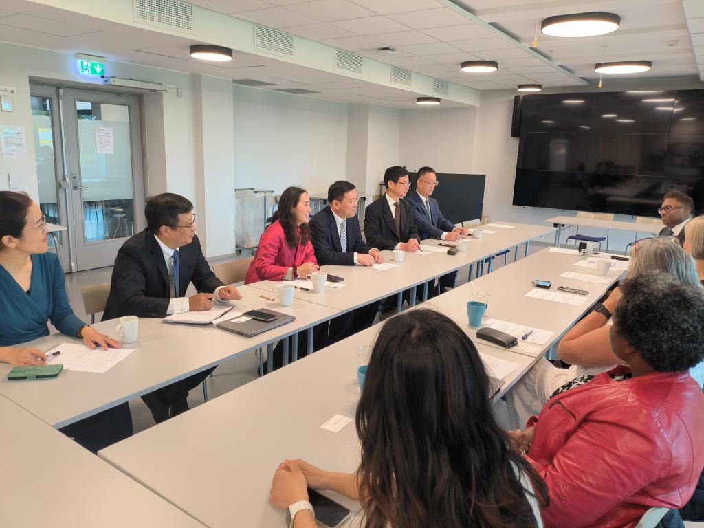 在挪威道斯康公司,我校代表团与公司董事长哈沙·拉特纳维拉、公司总经理迪诺·拉特纳维拉就高校技术转移转化和产学研合作进行了座谈交流。在与中国驻挪威大使馆一等秘书、教育处处长常全生交流期间,常全生对我校与挪威生命科学大学的合作表示了由衷赞赏,并表示2024年为中挪建交70周年,希望我校作为两国高校密切合作的典范,积极参与相关庆祝活动,为中挪高等教育合作增添新的活力。