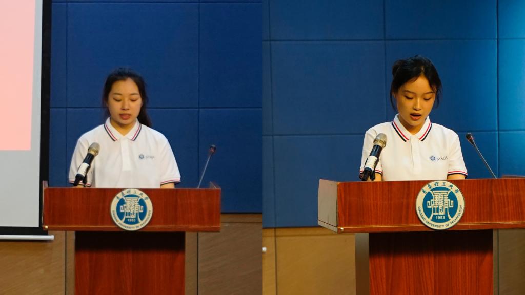 2021级学生巫以昕和周子涵作为在校生代表分别用中英文发言。作为学校SQA项目首届学生,巫以昕和周子涵向学弟学妹们分享了自己在大学校园学习生活的收获和感悟,感谢学校SQA项目为大家提供了丰富的资源和机会,她们勉励大家要不断探索,自我激励,抓住难得的机遇,厚植文化底蕴,精湛一技之长,奋发图强,不负韶华。