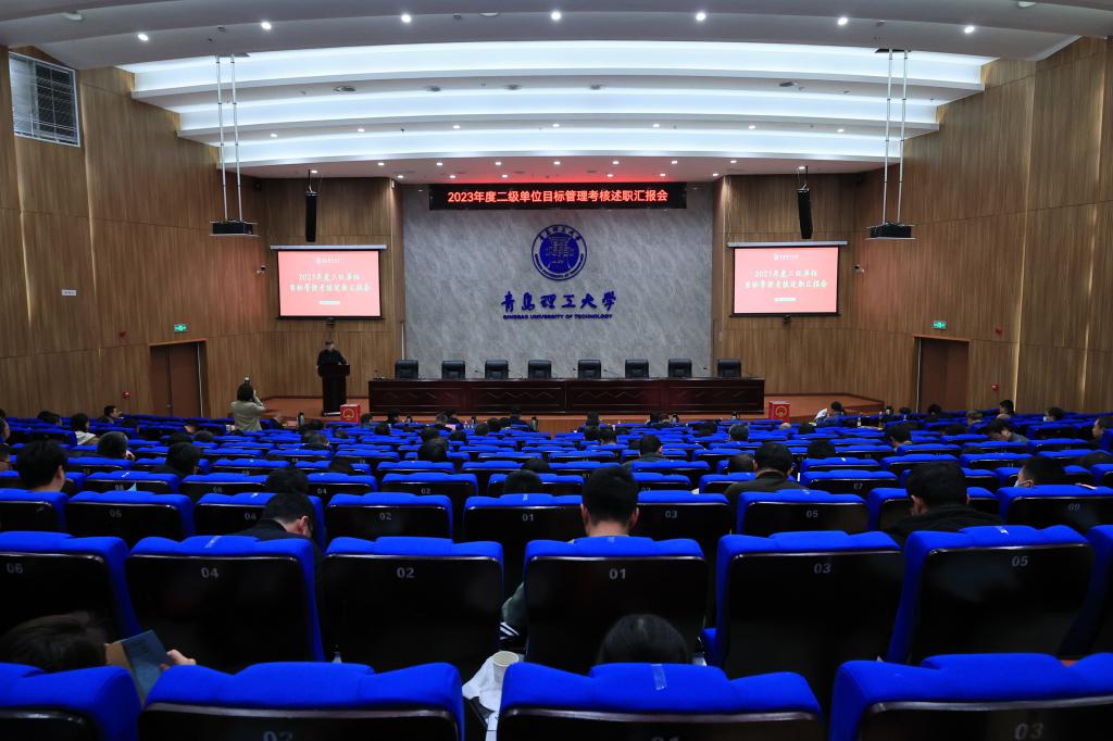 1月4日,学校在黄岛校区C2-3-G201报告厅召开2023年度二级单位目标管理考核述职汇报会。会议由党委常委、副校长李长河主持。学校党委书记王亚军及校领导班子其他成员、各二级单位主要负责人、处科级干部代表、教师代表参加会议。