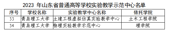 近日,山东省教育厅发布《关于公布2023 年山东省普通高等学校实验教学示范中心名单的通知》(鲁教高函〔2024〕6 号),遴选确定了138 个山东省普通高等学校实验教学示范中心,我校土建工程虚拟仿真实验教学中心和物理实验教学示范中心等2个中心获批。