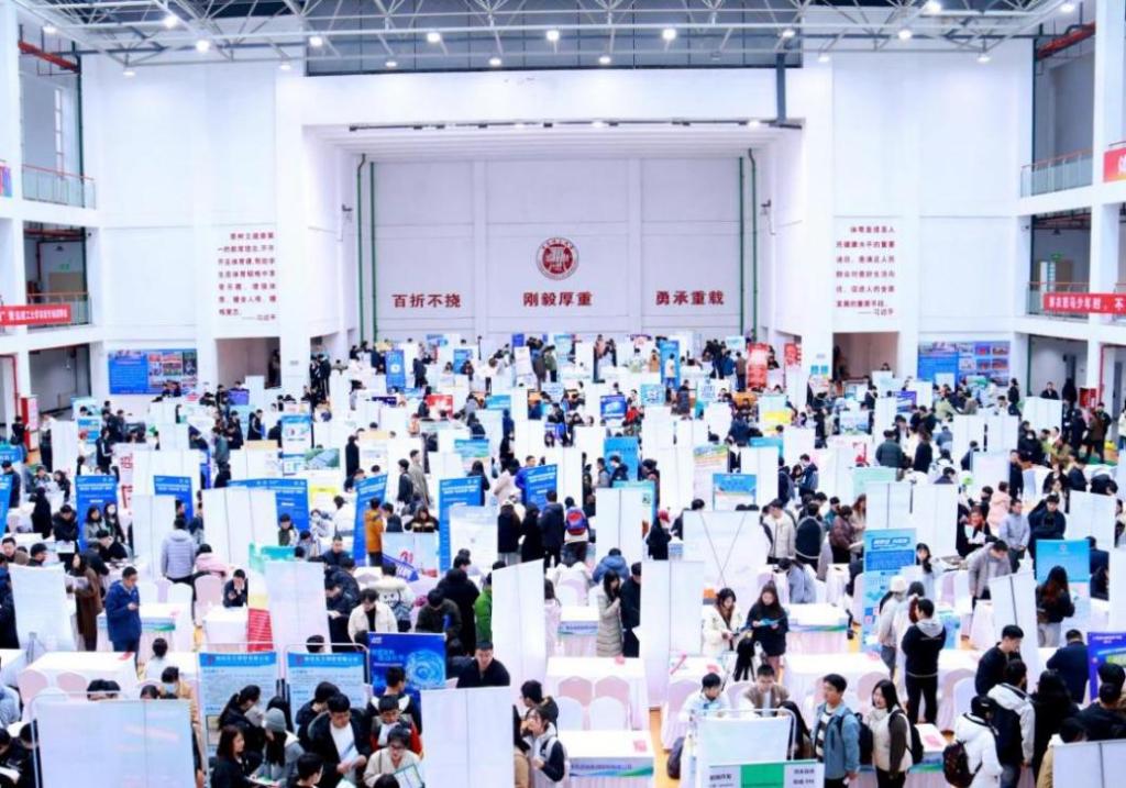 本次双选会是学校近三年来组织规模和招聘需求最大的线下招聘活动,得到了各地人社部门及企业的鼎力支持,共吸引360家企业入校纳才,涵盖机械制造、电子信息、金融证券等多个行业领域,提供岗位1.3万余个,为毕业生送来了海量就业选择。双选会现场还设立了“就业赋能”、“征兵宣讲”专区,为毕业生提供简历、面试指导,政策宣讲等全方位一站式就业服务。体育馆内人声鼎沸、气氛热烈。毕业生们带着精心准备的简历前往展台获取企业资料、了解岗位信息。各企业HR与同学们热烈交谈,耐心解答招聘岗位、晋升空间、工作环境、薪资福利等方面问题。“这次双选会给我们毕业生提供了非常多优质就业机会,而且双选会现场根据地域、行业等划分了央国企、政府组团等专区,特别方便我们找到自己的意向单位,为学校点赞!”环境与市政工程学院张同学说道。
