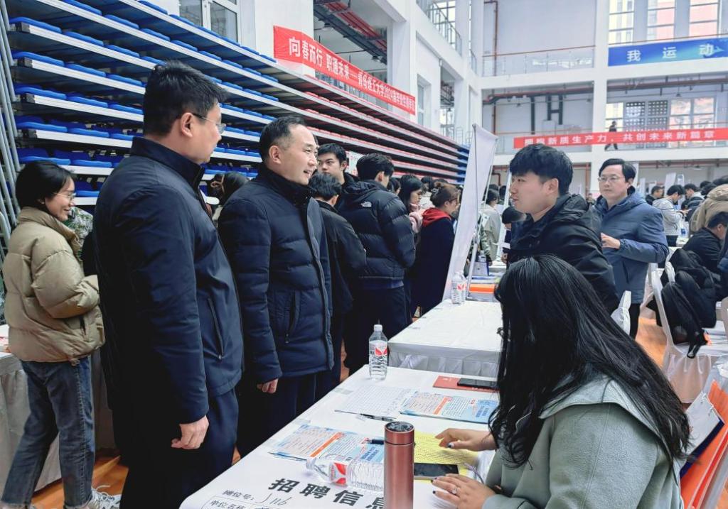 郭建锋向前来招贤纳士的企业表示热烈欢迎,对企业长期以来对学校人才培养和就业工作的大力支持表示感谢,并详细了解现场招聘情况,认真听取了企业对如何提高招聘活动实效,提升人才培养市场匹配度等方面的建议。他表示,学校将主动加强与各企业的紧密联系,校企联动共同铺设好人才输送的快车道。