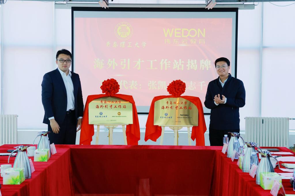 党委常委、副校长张凯及伟东云教育集团有限公司副总裁王志千共同为海外引才工作站揭牌