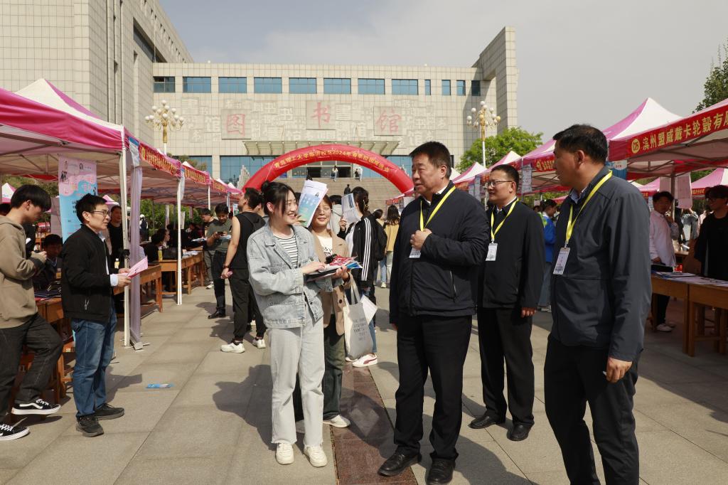4月17日,由临沂市人力资源和社会保障局与青岛理工大学临沂校区联合主办的“春风送暖,‘职’为你来”2024届毕业生春季校园双选会在图书馆广场举行。双选会吸引了包括中建五局、中核工业、海信集团在内的120余家高质量用人单位到校揽才,为校区提供1880余个就业岗位、3200 余名用人计划。
