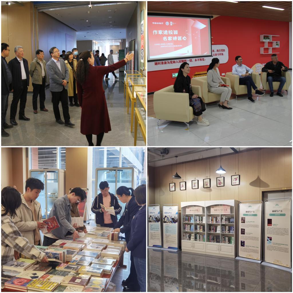 图书馆在当日举行了系列活动:举办“新质生产力·新专业·新阅读”为主题的世界读书日学习论坛,邀请山东大学、中国海洋大学、山东师范大学等高校专家进行主题分享与交流;联合青岛西海岸市民文化中心(渭河路)图书馆推出“作家进校园·名家讲匠心”主题活动,邀请岛城知名作家卢戎、张祚臣、刘涛三位作家老师,分享《劳模工匠耀岛城》一书中工匠劳模的精神故事。同步举办了“新质生产力”主题馆藏书目展和“妙成万象”的皮影、剪纸艺术展。
