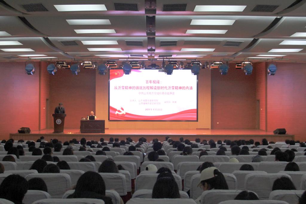 会上,徐波以《百年视阈:从沂蒙精神的铸就历程解读新时代沂蒙精神的内涵——中共山东地方党组织革命战争史》为题,从“党史学习教育常态化长效化的重大意义、新时代党史学习教育工作的基本遵循、中共山东地方党组织的革命历史——兼谈沂蒙精神铸就史”三个方面系统阐述了党史学习教育以及沂蒙精神产生和发展的脉络过程、重大意义和丰富内涵。报告深入浅出地阐述了党史学习教育的必要性,以大量史实案例,生动诠释了沂蒙精神孕育萌发、淬炼壮大、升华铸就形成的三个阶段,引起在场师生强烈的思想共鸣,为师生提供了学习研究党史、学习研究沂蒙精神的优秀范例。