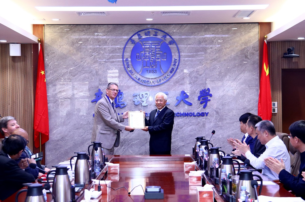 英国混凝土技术学会主席奈斯菲尔德向赵铁军教授颁发了英国混凝土学会荣誉会员证书。