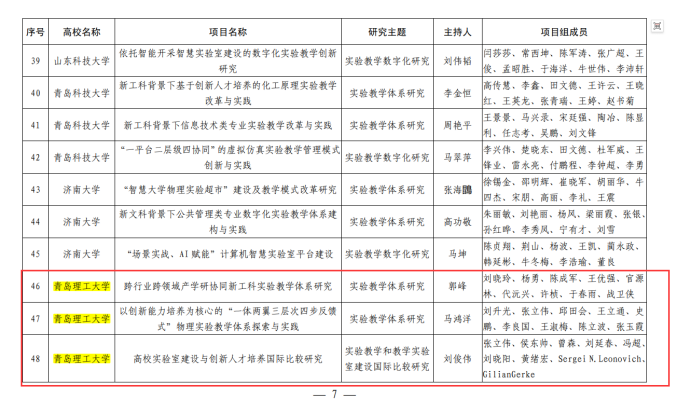 近日,山东省教育厅下发了《关于公布2024年实验教学和教学实验室建设研究项目立项名单的通知》(鲁教高函[2024]21号),我校3个项目成功获批,分别是郭峰教授主持的“跨行业跨领域产学研协同新工科实验教学体系研究”、马鸿洋教授主持的“以创新能力培养为核心的‘一体两翼三层次四步反馈式’物理实验教学体系探索与实践”、刘俊伟教授主持的“高校实验室建设与创新人才培养国际比较研究”。其中,“高校实验室建设与创新人才培养国际比较研究”被省教育厅推荐参加国家级项目评选,全省省属高校仅获推2项。