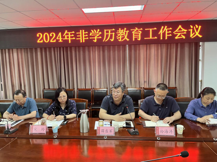 苗吉军就非学历教育工作提出四点要求:一是高度重视,非学历教育工作是学校服务国家战略需求、服务经济社会建设、服务全民终身学习的社会责任体现,全国、全省范围内高校普遍都越来越重视,上级教育主管部门也相继发布文件要求,同时,作为我校2024年一项重点工作任务,各办学单位要提高站位,班子应集体研究推进,有组织开展;二是加强合作,在产教融合、科教融汇背景下,依托学科专业优势和特色,加强与校外企业行业、单位和机构的交流合作;三是提高质量,各单位要规范项目管理,配强工作队伍,加强项目的宣传,提升工作成效;四是广泛发动,各办学单位要结合实际,制定相应的激励政策与机制,充分调动广大教职员工积极性,营造全员参与的氛围。