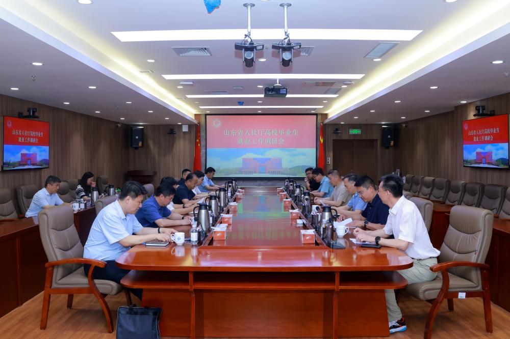 6月17日,山东省人力资源和社会保障厅党组成员、副厅长衣军强,青岛市人力资源和社会保障局党组成员、副局长刘传华等省市区人社部门相关负责人一行来校调研毕业生就业工作。学校党委书记杨赟主持座谈会,党委常委、副校长郭建锋参加座谈会,党政办公室、学生工作处、创新创业学院负责同志参加活动。