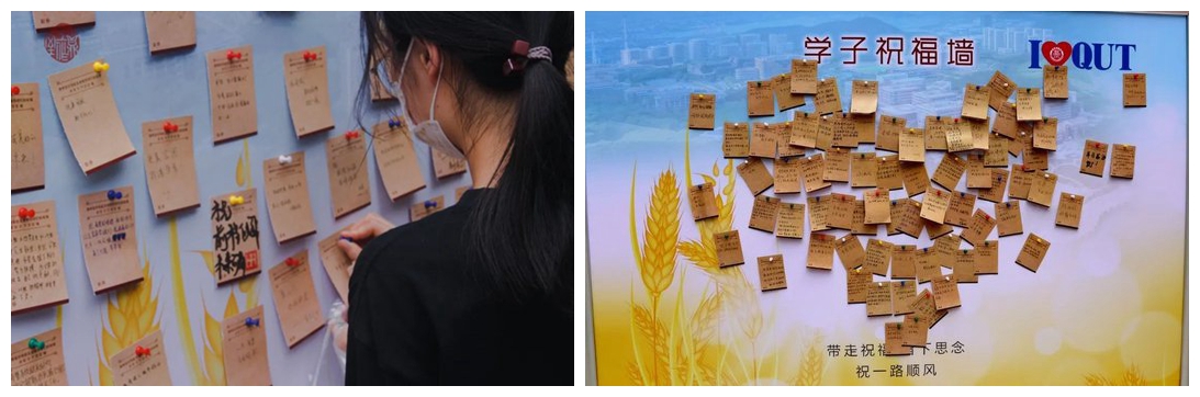 “在母校度过的四年,是我个人成长和知识积累的宝贵时光,在我的人生道路上经历了深刻的成长和蜕变,感谢母校对我的培养和教育, 祝愿母校桃李满天下,学子遍布四方。”建筑与城乡规划学院毕业生薄任飞在礼品券的副券上写下了自己对母校祝福,并将这份对未来的期许与梦想粘贴到祝福语集合板上,和大家一起分享这份特别的“独家记忆”。“孩子们,毕业快乐,看到你们要毕业了,我们既高兴又不舍,无论走到哪里,食堂的饭菜总是为你们准备着,记得常回家看看!”食堂唐师傅感慨道。