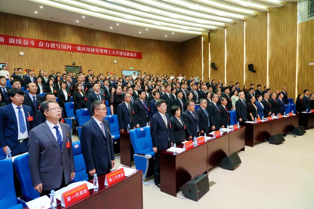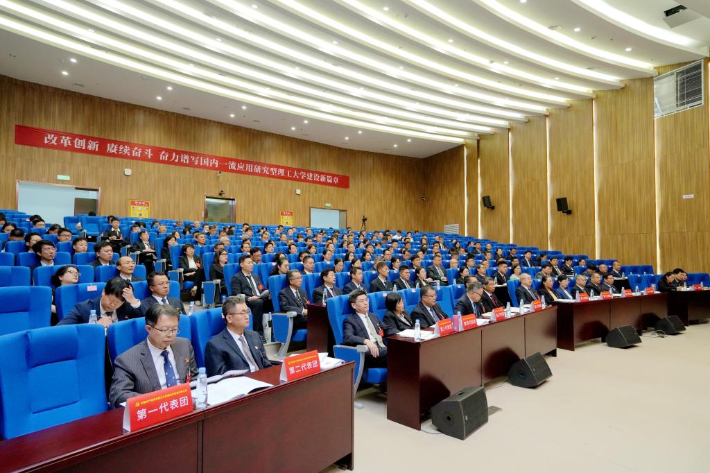 在热烈的掌声中,杨赟同志代表中国共产党青岛理工大学第三届委员会向大会作题为《改革创新 赓续奋斗 奋力谱写国内一流应用研究型理工大学建设新篇章》的工作报告。