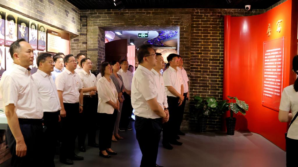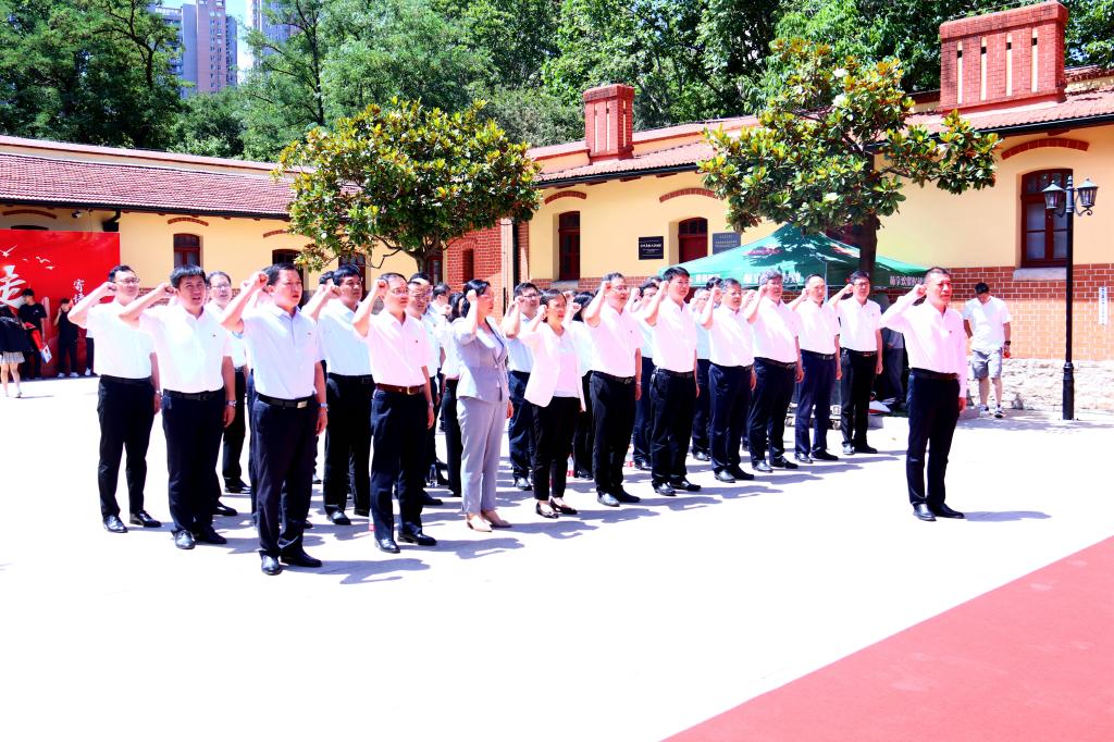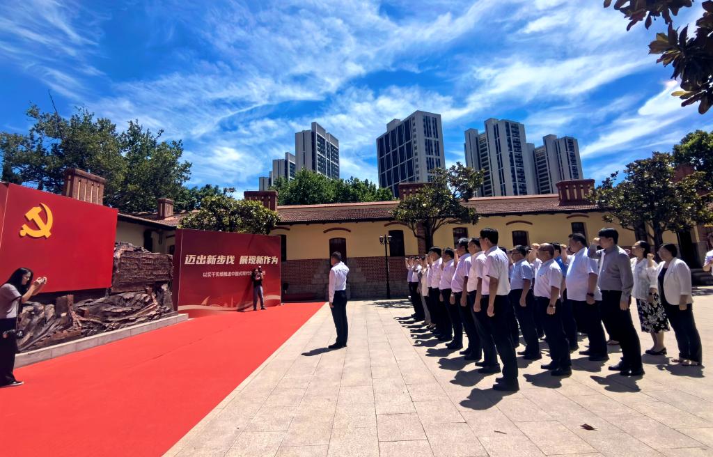 参观结束后,杨赟等来到党史纪念馆宣誓广场,面向鲜红的中国共产党党旗,庄严举起右拳,集体重温了入党誓词。