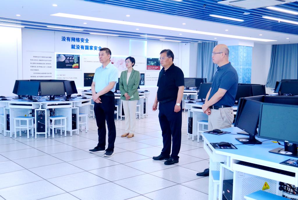 杨赟一行先后实地查看了数字电子技术、模拟电子技术、机器人智能控制、融合通信、云计算等实验室,了解实验教学中心运行和管理情况。
