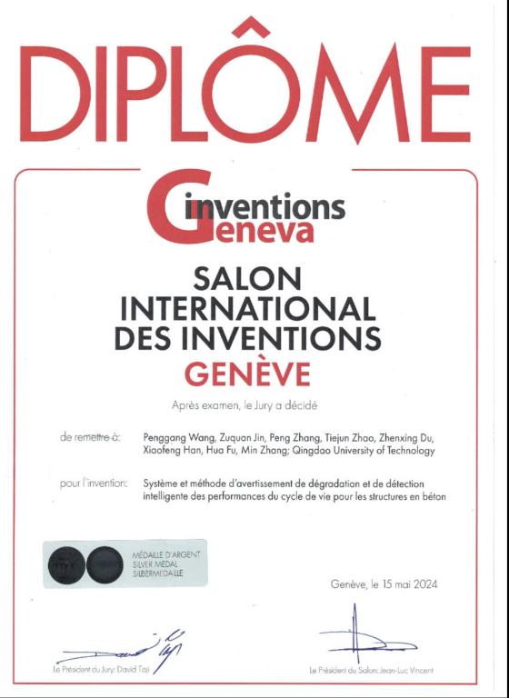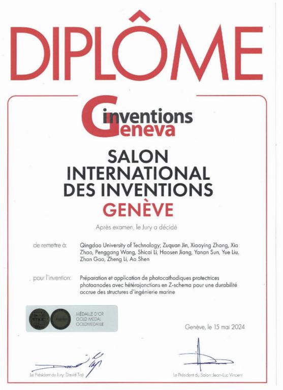 近日,第49届日内瓦国际发明展(International Exhibition of Inventions, Geneva)在瑞士成功举办,吸引来自近40个国家和地区的1000多个发明项目参展。我校海洋环境混凝土技术团队金祖权教授主持参展项目“Preparation and application of photocathodic protection photoanodes with z-scheme heterojunctions for enhanced durability of marine engineering structures”斩获金奖,泰山学者青年专家王鹏刚教授主持参展项目“Life-cycle performance intelligent-sensing and degradation warning system and method for concrete structures”斩获银奖。