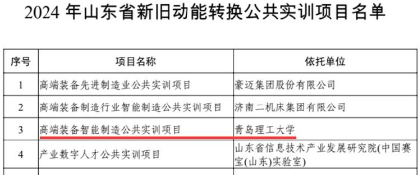 近日,山东省工业和信息化厅下发了《关于公布2024年山东省新旧动能转换公共实训项目名单的通知》,我校申报的“高端装备智能制造公共实训项目”成功入选,这是我校首次获得该类型项目支持。
