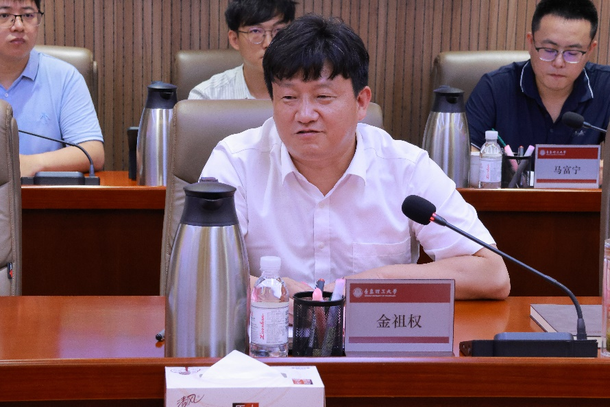 金祖权代表学校致欢迎辞,对山东省水利厅及省水科院各位领导专家的莅临表示热烈欢迎,介绍了学校学科建设、科学研究、人才培养的基本情况及本项目的立项背景,并对项目的顺利实施和重要创新成果的产出提出了殷切期望。隋家明在致辞中强调了该项目的重要性和紧迫性,并对项目的研究工作提出了明确要求,希望项目组以启动仪式为新的起点,努力攻坚克难,力争产出一系列高影响力的成果,为山东省沿海地区乃至全国的地下水管理与海水入侵防治工作提供宝贵经验和示范借鉴。