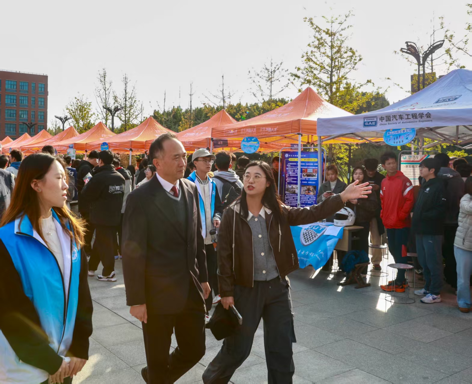 在游园会现场,郭建锋一行依次走访了各个社团的展位,仔细询问各学生社团的日常管理、活动开展以及成员发展情况,对同学们在社团活动中展现出的专业素养、实践能力和创新精神给予肯定,并表示,学生社团作为校园文化建设的重要力量,要立足学校发展大局,紧扣人才培养目标,把社团活动与专业学习、实践能力提升相结合,既服务学生兴趣发展,更助力学校“五育并举”育人工作落地见效。