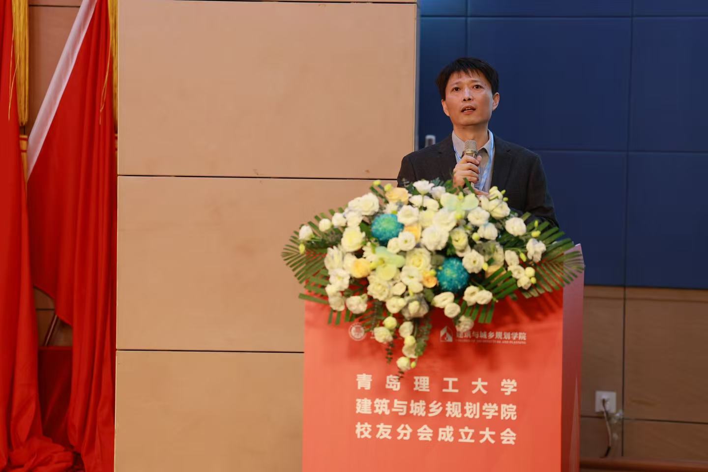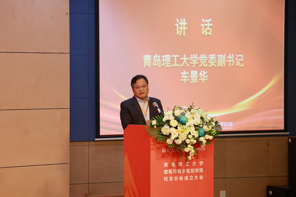 车景华代表学校对建筑与城乡规划学院校友分会的成立表示祝贺,他指出,校友是学校亮丽的品牌和名片,是推动学校发展的关键力量,建筑与城乡规划学院面临迈向转型发展与高质量内涵式建设的新时期,校友分会的成立具有重要意义,学院要坚定发展信心,力求学科建设新突破,扎实做好“服务校友、服务学院、服务社会”的各项工作,真正发挥校友分会的桥梁纽带作用,畅通母校与校友、校友与校友间的联系。希望以此次校友分会成立为契机,打造“一切以学生为中心”的特色校友文化,学会用校友的眼光关注在校生发展,凝聚力量,共创未来,为国家建设贡献力量。