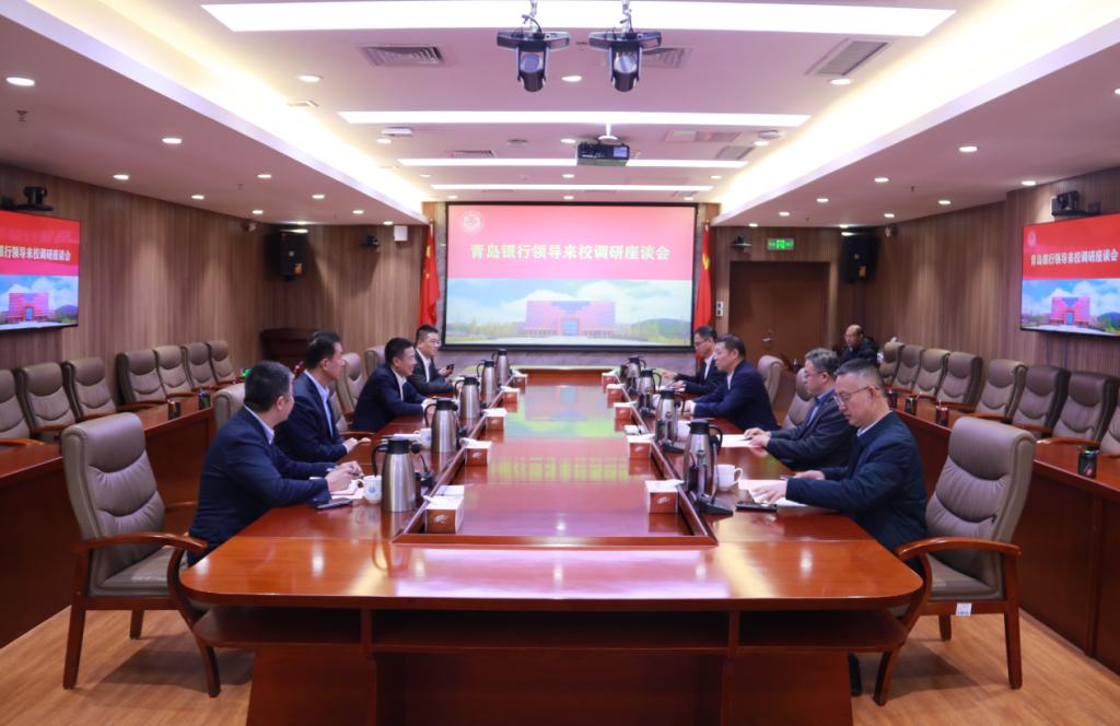 11月21日下午,青岛银行党委书记、董事长景在伦,党委委员、副行长张迟红一行来校调研座谈。党委书记杨赟主持座谈会,党委常委、副校长陈连军参加座谈并陪同调研。