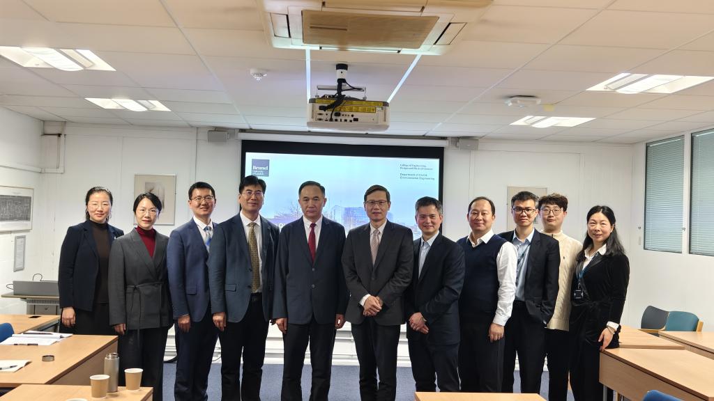 在伦敦布鲁内尔大学,代表团会见了该校主管科研副校长赵华教授、土木与环境工程学院院长周向明教授,洽谈智能建造专业中外合作办学、教师国际科研合作及学生联合培养等合作事宜。