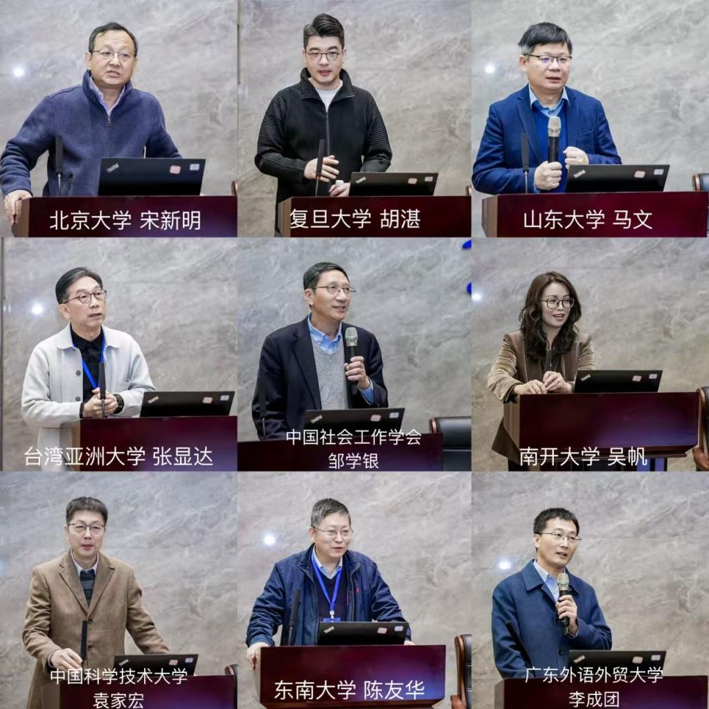 在为期两天的议程中,北京大学宋新明教授、复旦大学胡湛教授、山东大学马文教授、台湾亚洲大学张显达教授、中国社会工作学会邹学银秘书长、南开大学吴帆教授、中国科学技术大学袁家宏教授、东南大学陈友华教授、广东外语外贸大学李成团教授、青岛理工大学郭印教授等11位专家学者先后作主旨报告。