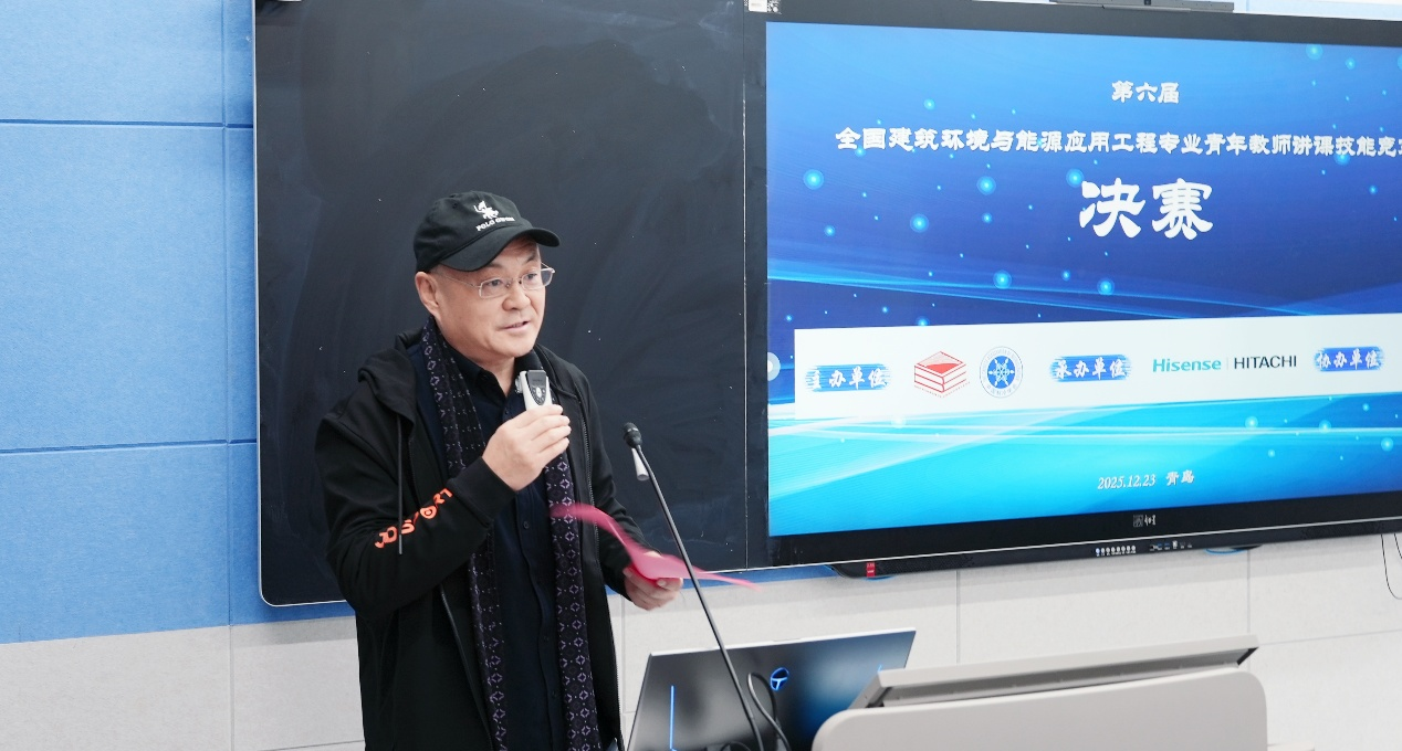 12月22日至24日,第六届全国建筑环境与能源应用工程专业青年教师讲课技能竞赛决赛在山东青岛举办。全国建筑环境与能源应用工程专业青年教师讲课技能竞赛旨在推动高校建环专业青年教师教学能力提升,促进教学理念与方法创新,加强教师间的交流与学习,为行业和国家培养高水平专业人才。本次竞赛由教育部高等学校建筑环境与能源应用工程专业教学指导分委员会和中国制冷学会联合主办,青岛理工大学协办,青岛海信日立空调系统有限公司提供独家支持,《暖通空调》作为战略合作媒体全程参与。学校党委副书记李长河代表学校出席本次会议。