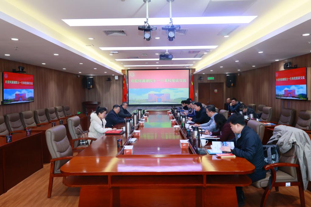 张凯校长代表学校对何满潮院士一行的到访表示热烈欢迎,向其长期以来对学校发展给予的关心与支持表示诚挚感谢,并简要汇报了学校近年来的发展概况,特别是在学科建设、科学研究与社会服务等方面取得的进展。
