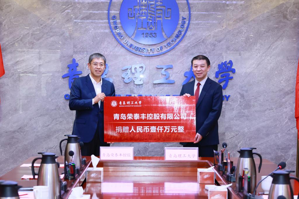 2月3日下午,青岛理工大学与青岛荣泰丰控股有限公司(以下简称“荣泰集团”)捐赠签约仪式在黄岛校区隆重举行。此次仪式适逢学校建校75周年倒计时1000天之际,荣泰集团以捐资1000万元的厚重情谊,开启了一场跨越千天的深情祝福,更以“1000天、1000万”的双重数字,诠释了校友企业与母校血脉相连、同频共振的深厚渊源,为学校开启发展新篇章增添了浓墨重彩的一笔。
