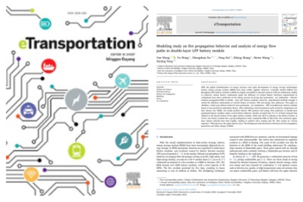 近日,机械与汽车工程学院王炎副教授在储能电站电池系统安全领域取得重要研究进展,成果在国际交通领域高水平期刊eTransportation(IF=17)发表。