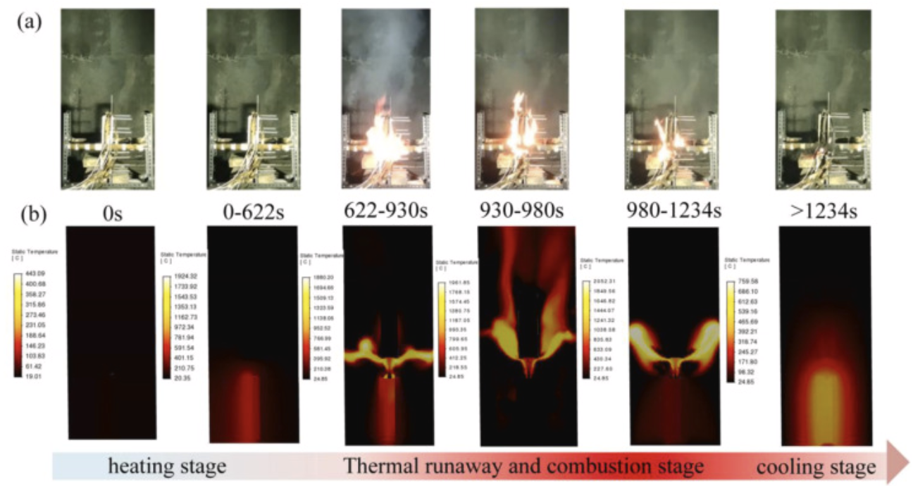 在山东省重点研发重大科技创新工程、国家自然科学基金、山东省高等学校青优创新团队等联合支持下,我院王炎副教授突破了电池安全领域火焰传播及能量传输路径仿真的技术瓶颈,首次建立了“电化学反应-射流气体扩散-燃烧不稳定性”全链条失效耦合模型,实现了从电池单体失效到系统级灾变的全过程动态模拟,仿真误差<6%,揭示了储能电站电池热失控底层顺序蔓延-上层阵群失效机制,发现了气体湍流扩散燃烧加速储能电池系统失效关键作用。